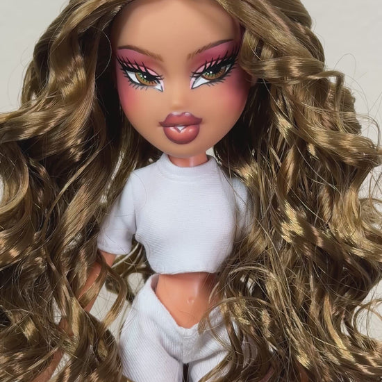 Doll has been hand painted and airbrushed with high quality acrylic paint and sealed with multiple layers of MSC sealant. Doll has nylon hair that has been styled.