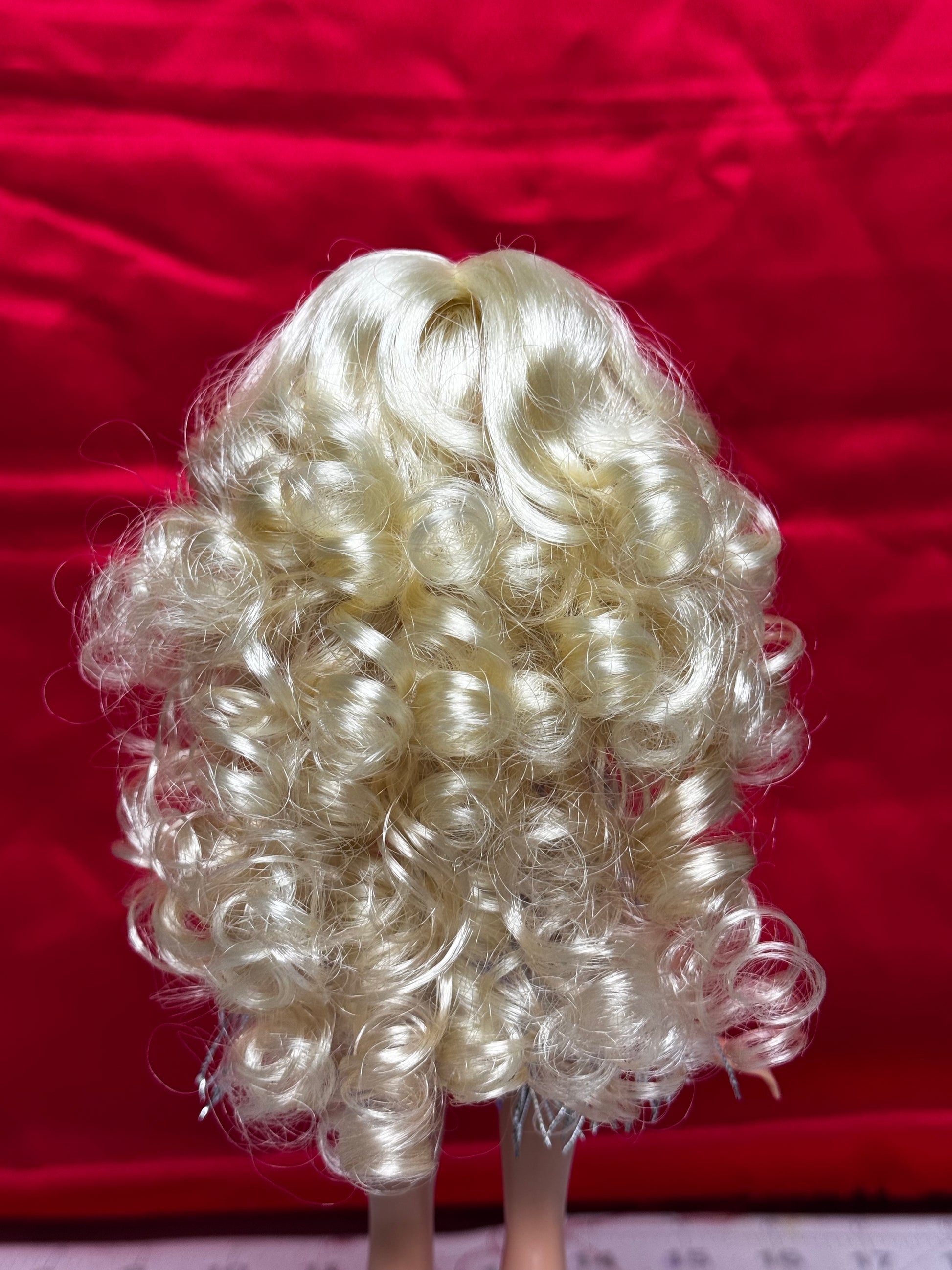 Doll has been hand painted with high quality acrylic paint and sealed with multiple layers of MSC sealant. Doll is rooted with high quality, multi-toned pre-curled nylon hair that has been cut and styled.